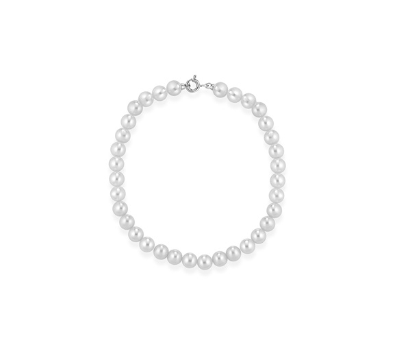 Bracciale di perle coltivate d'acqua dolce di alta qualità e chiusura in oro bianco 18kt Semplicità ed eleganza si uniscono in questi bracciali di perle, impreziositi dall’oro bianco. Pratici da indossare e facili da abbinare, donano un tocco di luminosità. La perla misurano 6.5/7mm Il bracciale ha una lunghezza di 20cm. Comoda chiusura a moschettone. Il gioiello è interamente realizzato in Italia da maestri orafi e verrà spedito con scatola e garanzia originali.Ti potrebbe interessare anche