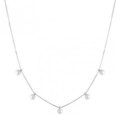 Girocollo in oro bianco 18kt e perle coltivata d'acqua dolce di alta qualità. Gioielli contemporanei da portare sempre con sè. Le perle misurano 4.5/5mm la collana ha una lunghezza regolabile da 36 a 39 cm. Comoda chiusura a moschettone. Il gioiello è interamente realizzato in Italia da maestri orafi e verrà spedito con scatola e garanzia originali.