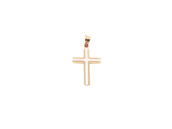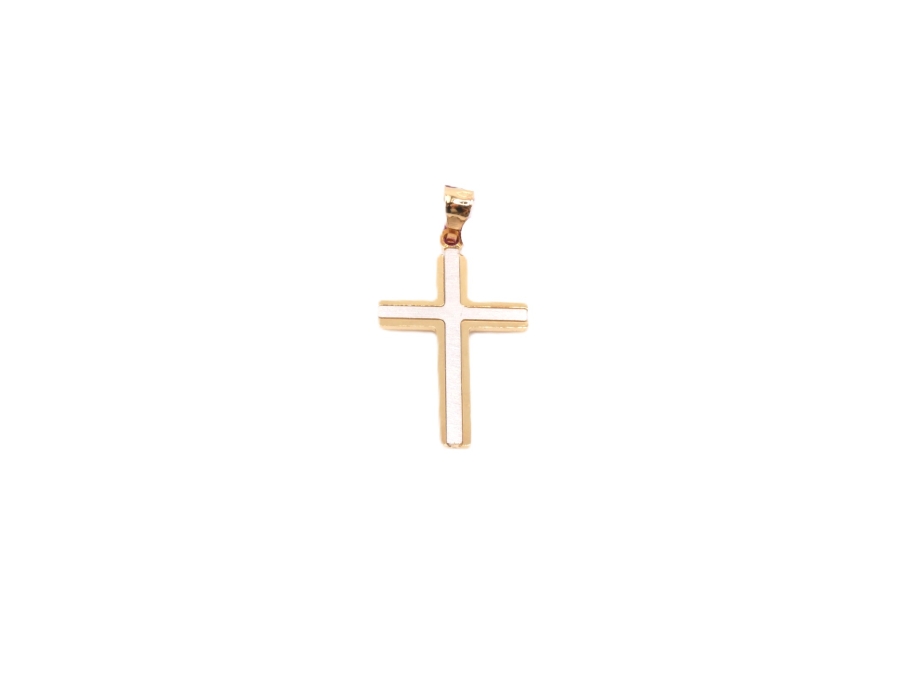 Ciondolo in oro giallo e oro bianco 18kt dal peso di 1,4 gr. a forma di croce.Ti potrebbe interessare anche