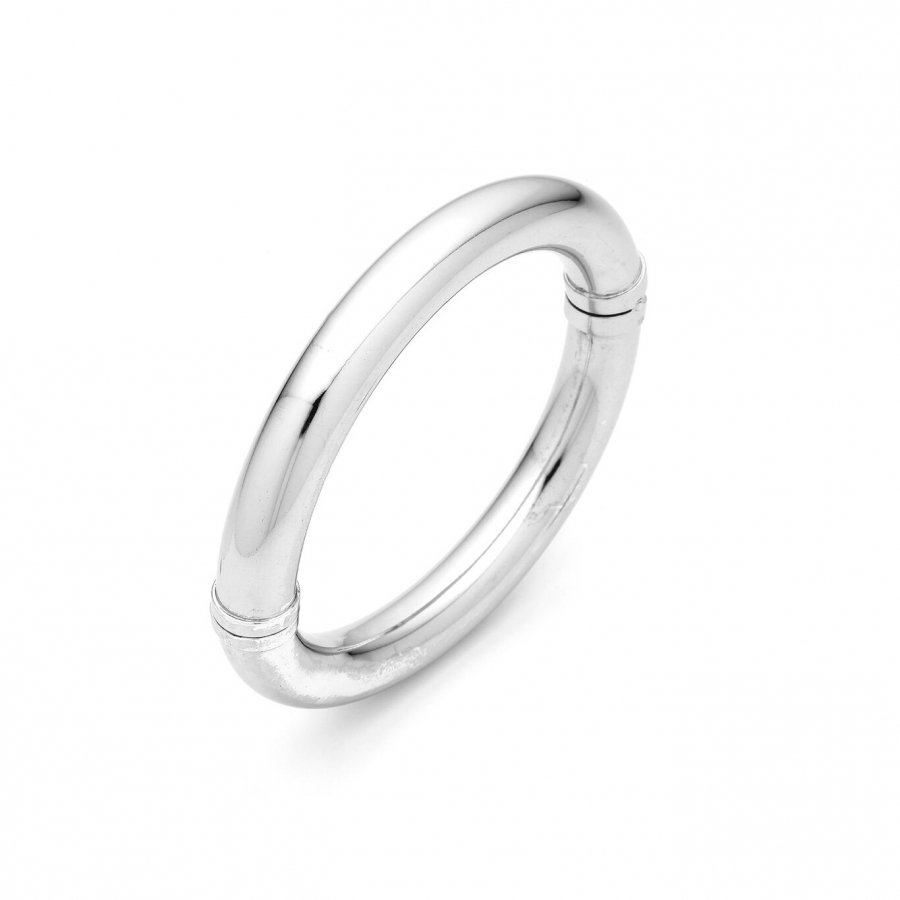 Bracciale in argento 925 * , da donna, Silk grande bangle di Govanni Raspini, realizzato artigianalmente a mano in Italia. La sfera d'argento martellata dal peso di 28 g struttura il gioiello stesso, la misura è ovale di 5x6 cm con facile apertura a molla. Gioiello che veste il polso con fierezza come solo i bangle sanno fare, ma non dimentica lo stile e la ricerca di classe tipici del brand. Un tocco in più è dato dalle mille sfaccettature che la martellatura regala a chi indosserà questo bangle: luce argentata da sfoggiare in ogni occasione per un look decisamente sofisticato.