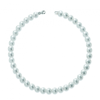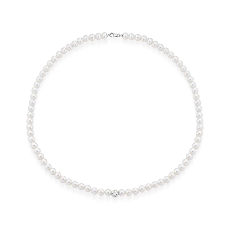 Girocollo di perle coltivata d'acqua dolce di alta qualità con sfera e chiusura in oro bianco 18kt. La raffinatezza delle perle, perfettamente sferiche e lucenti, trasmette bellezza ed eleganza. Le perl misurano 5/5.5mm la collana ha una lunghezza di 42cm. Comoda chiusura a moschettone. Il gioiello è interamente realizzato in Italia da maestri orafi e verrà spedito con scatola e garanzia originali.