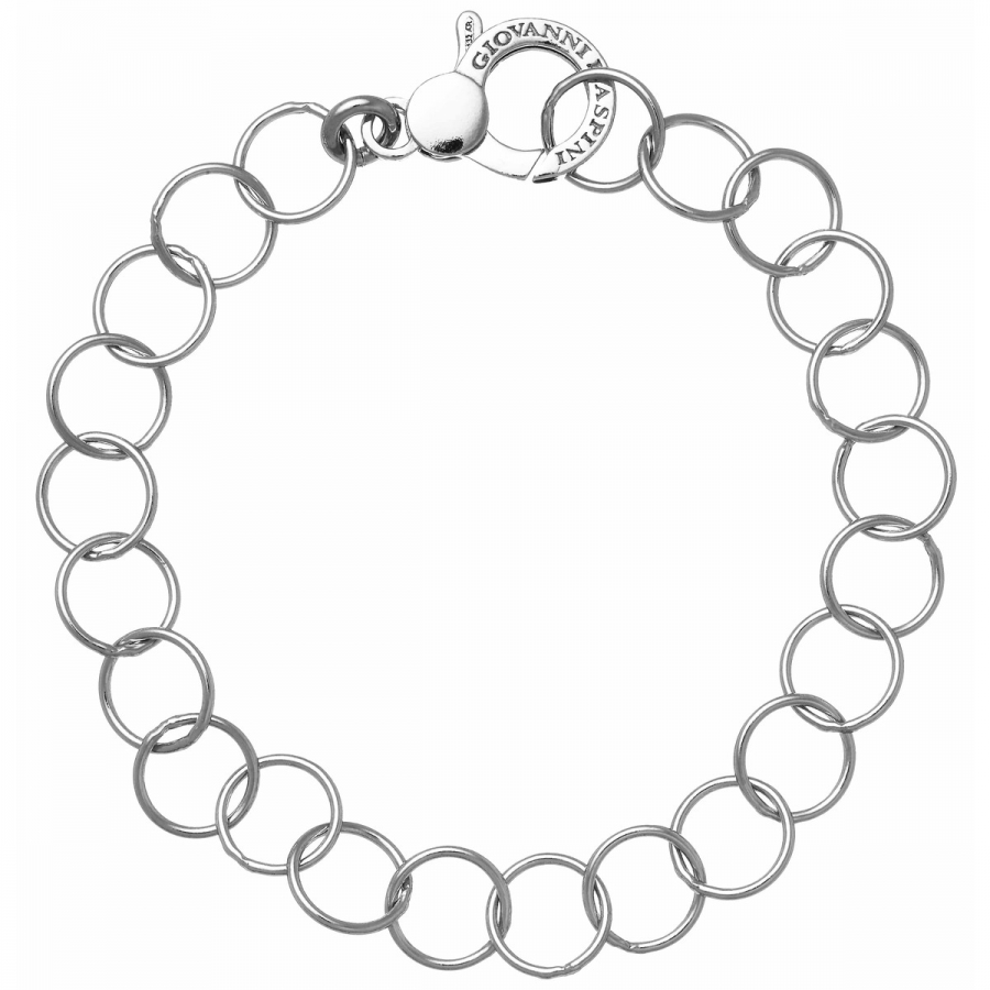 Bracciale in argento 925 * da donna della collezione Charms di Giovanni Raspini, realizzato artigianalmente a mano in Italia. Bracciale base per personalizzare il proprio gioiello con i Charms firmati Raspini. Dotato di facile chiusura a moschettone, i charms possono essere aggiunti alle maglie del bracciale con l'ausilio di pinzette.Immagini
