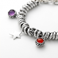 Charm in argento 925 della collezione Perlage di Giovanni Raspini. Con pietra naturale Corniola, munito di maglina con logo e un peso di 2,5 grammi. La lunghezza totale è di 1,3 cm interamente realizzato a mano in Italia. Viene spedito con scatola e garanzia originali Giovanni Raspini
