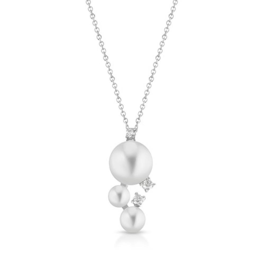 COLLANA IN ORO BIANCO 18KT CON PENDENTE 3 PERLE EDISON E DIAMANTI DI COSCIA