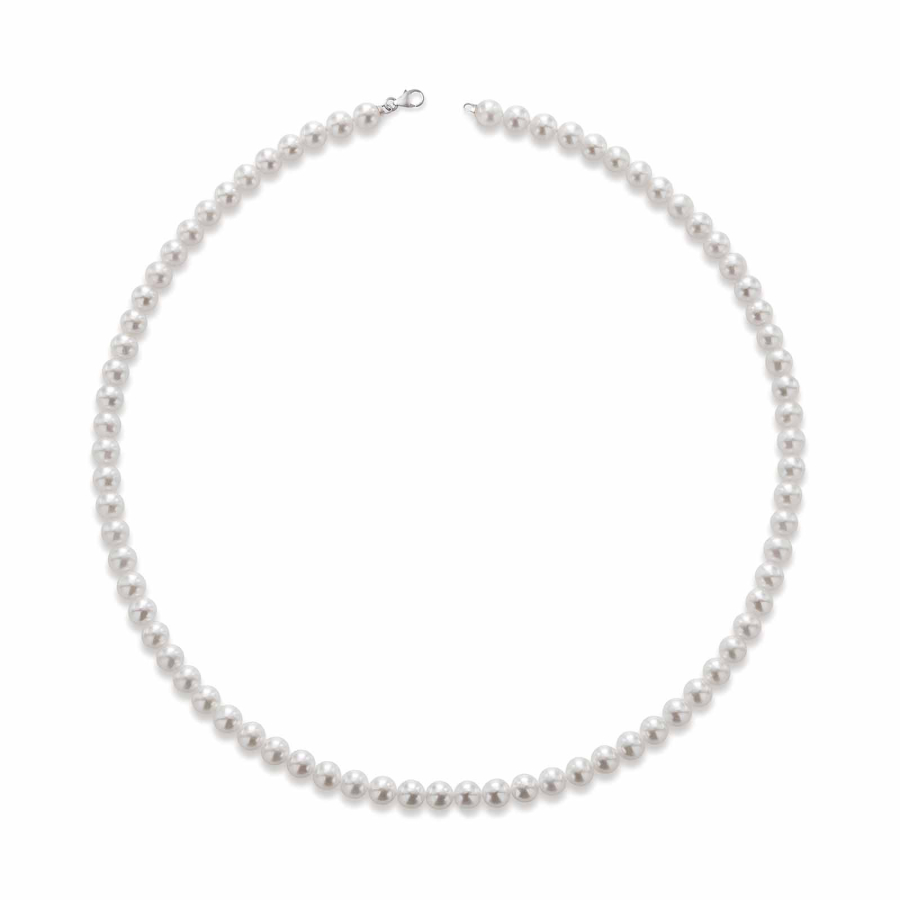 Girocollo di perle coltivata d'acqua dolce di alta qualità e chiusura in oro bianco 18kt. La raffinatezza delle perle, perfettamente sferiche e lucenti, trasmette bellezza ed eleganza. Le perl misurano 5.5/6mm la collana ha una lunghezza di 42cm. Comoda chiusura a moschettone. Il gioiello è interamente realizzato in Italia da maestri orafi e verrà spedito con scatola e garanzia originali.Immagini