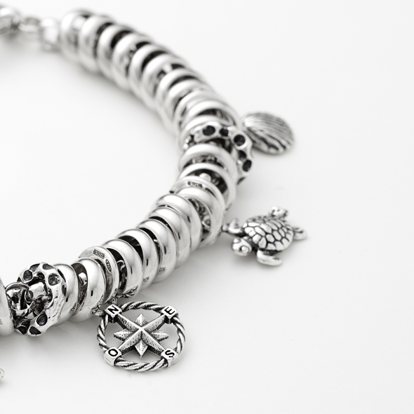 Charm in argento 925 *, con Mini rosa dei venti di Giovanni Raspini. Il charm è realizzato artigianalmente a mano in Italia, è munito di maglina con logo Raspini e può essere inserito facilmente su collane, bracciali, portachiavi e orecchini, per rendere ogni gioiello unico e personale.Immagini