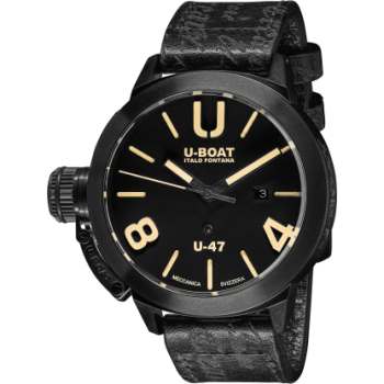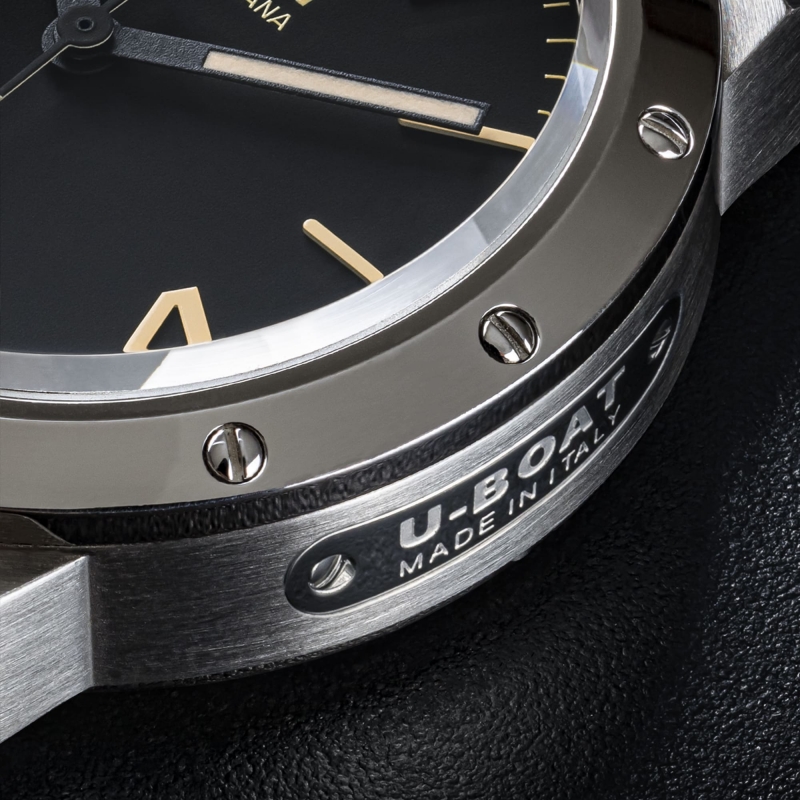 Identità ed eleganza sono gli elementi fondamentali che caratterizzano i modelli Classico Vintage. Uno stile pulito, ispirato a linee retrò rielaborate in chiave contemporanea, racchiuso in 40mm. MOVIMENTO svizzero carica automatica con specifiche tecniche U-BOAT. Rotore scheletrato personalizzato. Frequenza 28.800 alternanze/ora riserva di carica 44 ore. 26 rubini. QUADRANTE in metallo nero opaco con indici e numeri beige applicati. Sfere in metallo leggero con superluminova beige. FUNZIONI ore, minuti, secondi, data, giorno. VETRO zaffiro di altissima qualità con trattamento antiriflesso. CASSA in acciaio AISI 316L con distintivo copri corona a sinistra. Diametro 40 mm. IMPERMEABILITÀ 100 mt, 10 ATM. FONDO chiuso con 6 viti e vetro zaffiro taglio ad U. CINTURINO nero, in pelle laserata invecchiata con procedimento naturale. Realizzato a mano in Toscana da esperti artigiani. Cuciture in cotone cerato. Larghezza: 20/18 mm. Cinturino: ref. 9196. Fibbia in acciaio. Fibbia: ref. 7019 / SCREWSImmagini