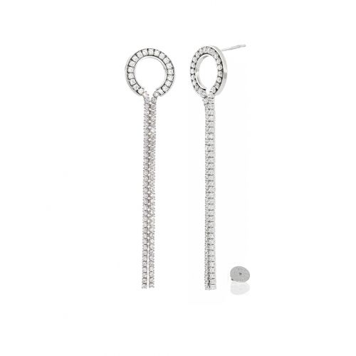 Orecchini in Argento 925 da donna di Unoaerre. Orecchini con elemento a cerchio di diametro 1,50 cm, pietre zirconia cubica bianche e chiusura al lobo con perno e farfallina. Questi meravigliosi orecchini lunghi illumineranno il tuo sguardo ogni volta che li indosserai. Gioielli Made in Italy. Questo Gioiello verrà spedito con scatola e garanzia originale Unoaerre.