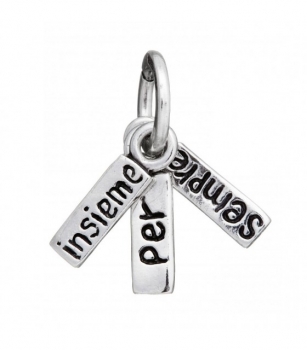 Charm in argento 925 * , "Insieme per sempre" di Raspini, realizzato artigianalmente a mano in Italia. Il charm è munito di maglina con logo Raspini e può essere inserito facilmente su collane, bracciali, portachiavi e orecchini, per rendere speciale ogni gioiello.Immagini