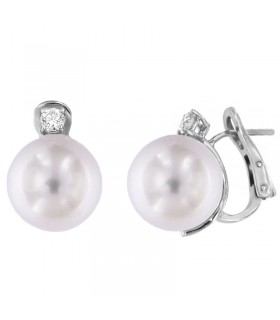 ORECCHINI IN ORO BIANCO 18 KT CON PERLE AKOYAE DIAMANTI DI COSCIA