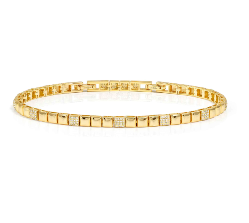 Bracciale in Argento con rivestimento superficiale, realizzato mediante bagno galvanico, in Oro Giallo impreziosito da Pavé di Cubic Zirconia, che catturano ogni sguardo. Questo accessorio della collezione Enigmatic Shine unisce un design sofisticato e luminoso, diventando un vero simbolo di eleganza e raffinatezza. Il gioiello verrà spedito con scatola e garanzia originali.