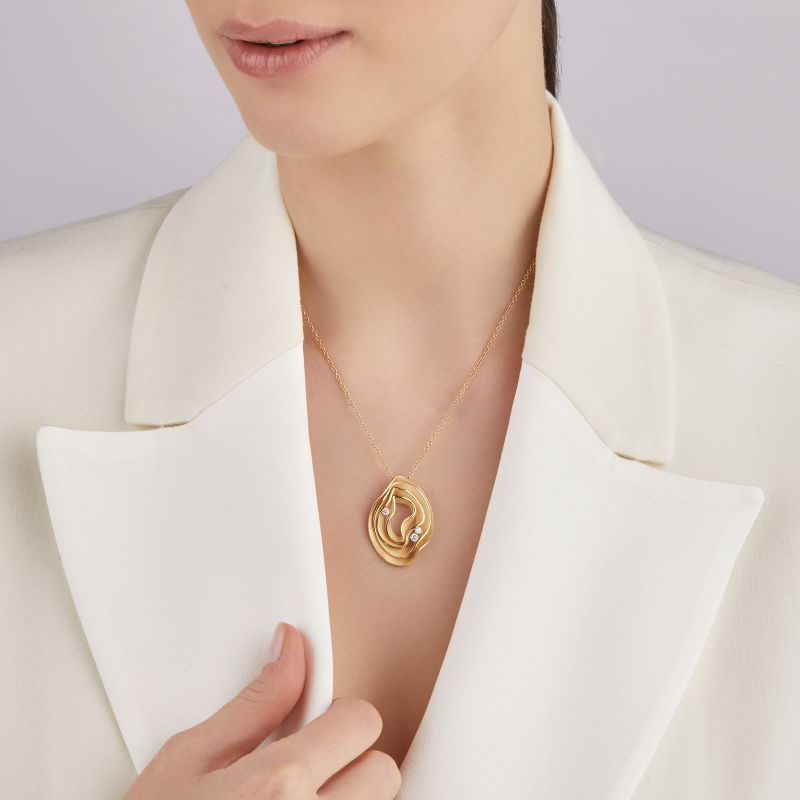 Unico nelle forme e nello stile, il design contemporaneo di Cammilli esalta i volumi scultorei dei gioielli, che con i loro movimenti giocano a valorizzare le pietre preziose. Le forme fluide ed essenziali si alternano a superfici setose dall’estetica inusuale. Pendente Serie Dune in Oro Orange Apricot 18Kt coin Diamant.Dia ct. 0.16. Il gioiello verrà spedito con scatola e garanzia originali Annamaria CammilliImmagini